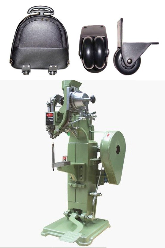 | 產(chǎn)品名稱(chēng) | 箱包鉚釘機 | 型號 | HW-J8F | | 喉深 | 250mm | 電壓 | 380V | | 鉚釘直徑 | φ3-5mm | 外觀(guān)尺寸 | 720*480*1400mm | | 馬力 | 1/2HP | 凈重 | 340kg | | 適用行業(yè) | 適用于開(kāi)叉釘、中空釘鉚合。產(chǎn)品如皮帶、皮帶接頭、皮包扣帶五金制品等配件 | | 產(chǎn)品配置及特點(diǎn) | 由腳踏板控制雙段式下料給予正確鉚合 ◆單粒鉚合 ◆鉚釘自動(dòng)下料 ◆套片手動(dòng)入料 | | 典型使用廠(chǎng)家 | 河北飛越箱包廠(chǎng),南海史歷克箱包廠(chǎng),廣州葉子王箱包廠(chǎng),名揚箱包廠(chǎng)、合肥恭喜箱包廠(chǎng) |  | 產(chǎn)品名稱(chēng) | 大型二沖程鉚釘機 | 型號 | HW-J12P | | 喉 深 | 400mm | 電壓 | 380V | | 鉚釘直徑 | φ4-5mm | 外觀(guān)尺寸 | 860*550*1700mm | | 馬 力 | 1/2HP | 凈重 | 320kg | | 適用行業(yè) | 適用于皮箱之把手、托帶側釘等一般鉚合 | | 產(chǎn)品配置及特點(diǎn) | 由腳踏板控制雙段式下料給予正確鉚合 ◆單粒鉚合 ◆鉚釘自動(dòng)下料 ◆套片手動(dòng)入料 | | 典型使用廠(chǎng)家 | 河北飛越箱包廠(chǎng),南海史歷克箱包廠(chǎng),廣州葉子王箱包廠(chǎng),名揚箱包廠(chǎng)、合肥恭喜箱包廠(chǎng) |  | 產(chǎn)品名稱(chēng) | 旅行箱鉚釘機 | 型號 | HW-J12G | | 喉 深 | 400mm | 電壓 | 380V | | 鉚釘直徑 | φ4-5mm | 外觀(guān)尺寸 | 860*550*1700mm | | 馬 力 | 1/2HP | 凈重 | 320kg | | 適用行業(yè) | 適用于皮箱之把手、底座釘等一般鉚合 | | 產(chǎn)品配置及特點(diǎn) | 由腳踏板控制雙段式下料給予正確鉚合 ◆單粒鉚合 ◆鉚釘自動(dòng)下料 ◆套片手動(dòng)入料 |  用途:適用于皮箱底釘、托帶側釘、刨釘、輪子等中空鉚釘、束口釘之鉚合, 單粒鉚合 鉚釘自動(dòng)送料 套片手動(dòng)入料 機械寸尺:930×550×1770(mm) 鉚釘面徑:φ8-12(mm) 鉚釘管徑:φ3-5(mm) 鉚釘長(cháng)度:5-23(mm) 喉深:400(mm) 鉚合高度:1100(mm) 馬力:3/4(HP) 凈重:370(kg) |